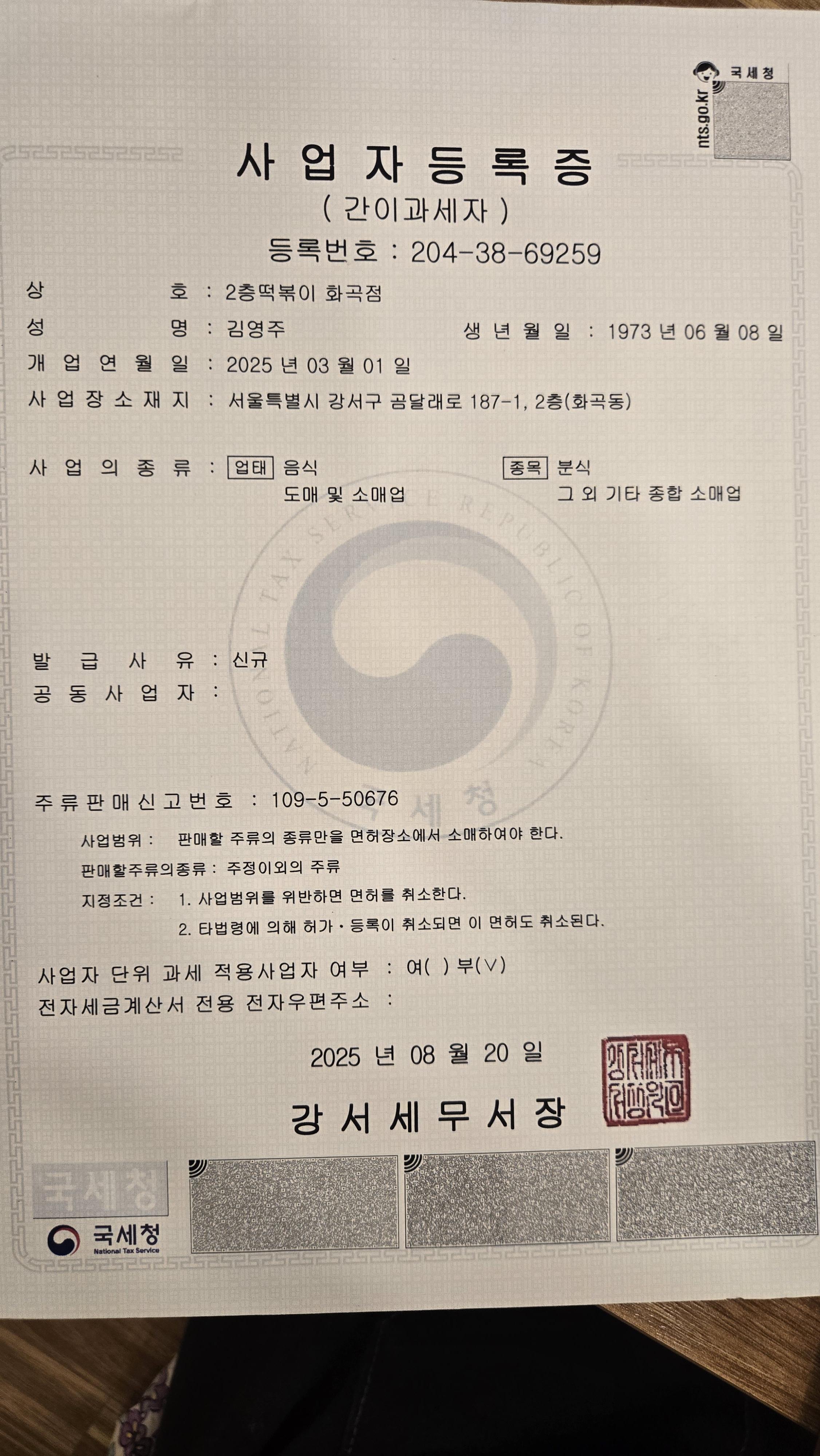 영업신고증 주소가 다릅니다